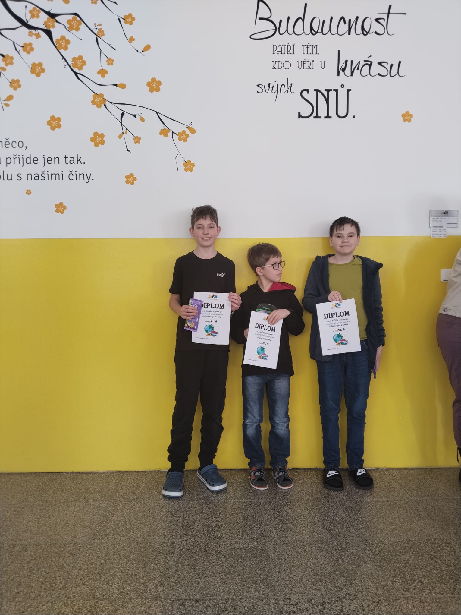 Kategorie A (6. ročník) – 1.místo Milan Urban, 2. Lukáš Popelka, 3. Vojtěch Grmela.