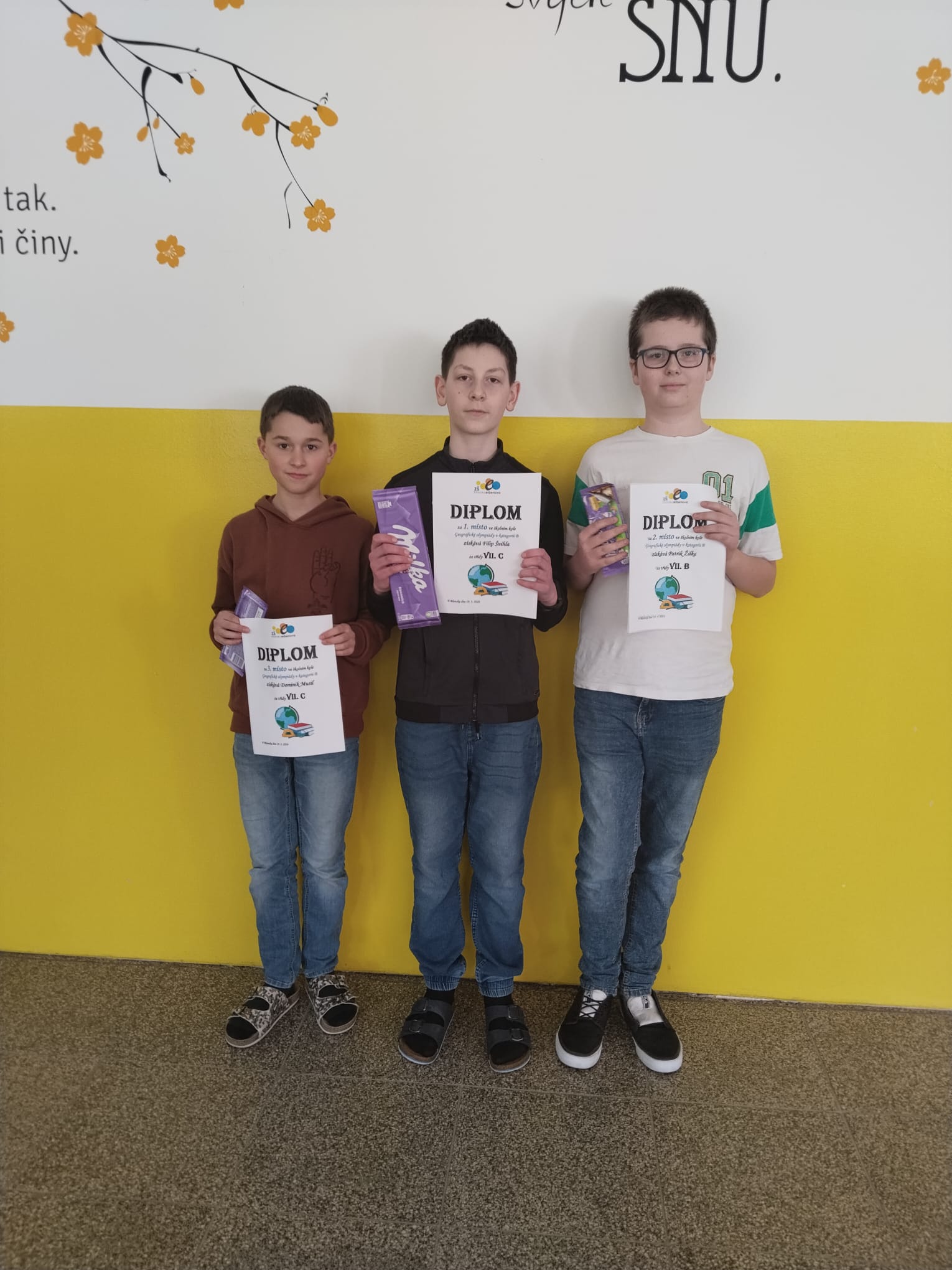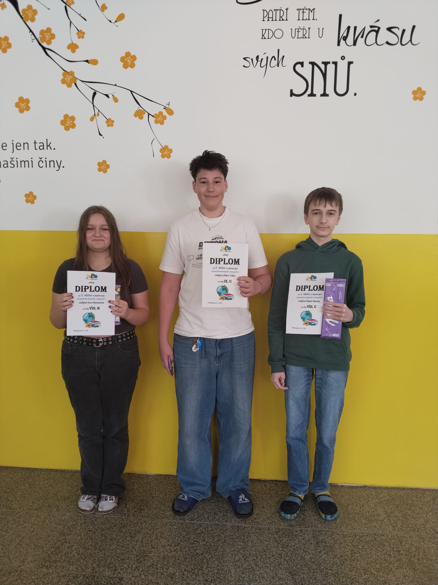 Kategorie C (8. a 9. ročník) – 1. místo Štěpán Basista, 2. Albert Uhde, 3. Eva Metnarová. Zvláštního úspěchu dosáhl Filip Švihla, který se stal úspěšným řešitelem okresního kola.